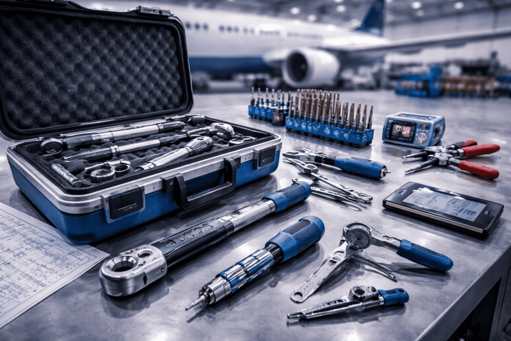 Specialized aircraft tools for maintenance and technical applications.