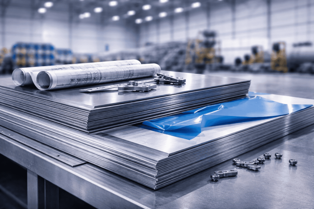 Titanium and Alclad aluminum sheets for aerospace applications.